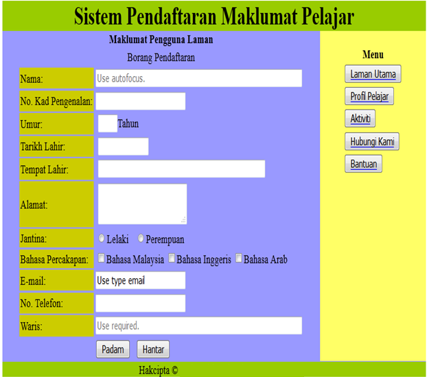 Sistem Maklumat Pelajar Ukm : Sistem Permohonan Dan Kemasukan Secara Online Program Siswazah Guest : 3abstrak universiti kebangsaan malaysia(ukm) tidak lagi asing dalam kalangan penduduk malaysia.. E operasi sistem maklumat guru saps ibu bapa. Projek mini pengenalan 1.1) objektif/tujuan norafiqah binti alimun sistem maklumat pendaftaran pelajar baru tadika kemas sri kandi,sabah direka adalah dengan bertujuan memudahkan pengurusan kepada pihak pentadbiran bagi mengatur atau menguruskan sesuatu pendaftaran pelajar. Pihak editor memohon maaf akan kelewatan pihak kami memperbaharui maklumat dan info terbaru kami.secara jujurnya pihak kami mengalami masalah teknikal yang tidak dapat di elak kan. Smpweb merupakan ringkasan bagi sistem maklumat pelajar. Myself jpa ini menggantikan sistem yang lama bagi mengemaskini status kemasukan duit jpa anda.
